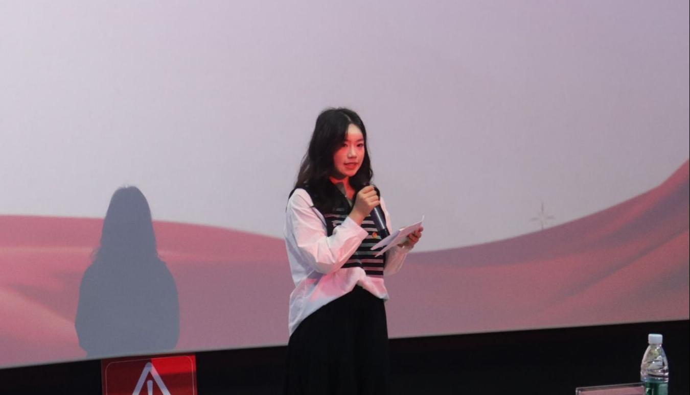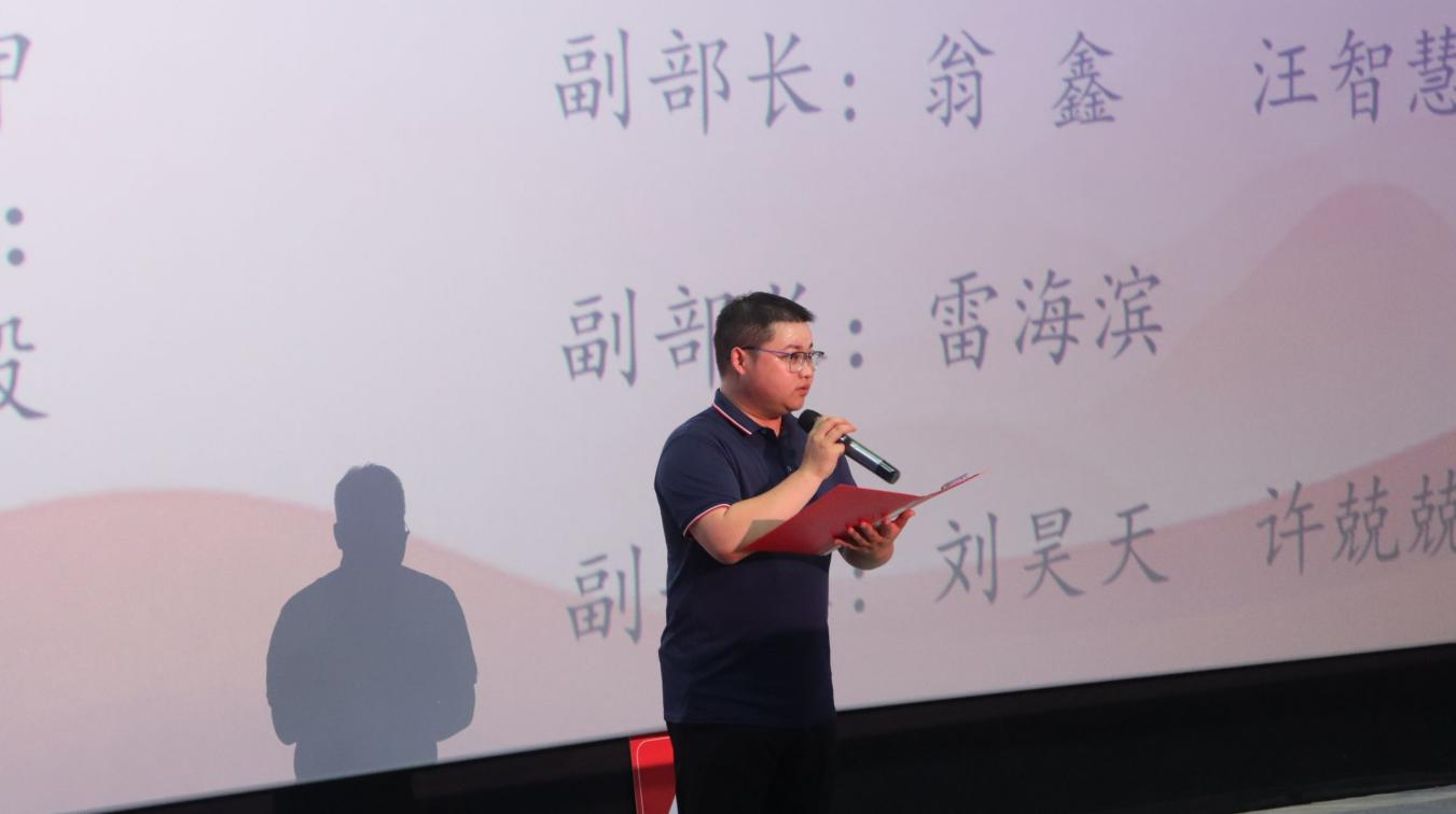 随即谭林峰老师宣读新任干部名单,一个个姓名跃上屏幕,承载着学院、老师以及学长学姐对新任学生组织骨干“再出发”的期待。新任团总支综合事务部部长吕佳敏作为新任学生代表发言,从“接过接力棒的忐忑”讲到“尽职尽责的决心”,简短的话语里,尽显担当与温度。