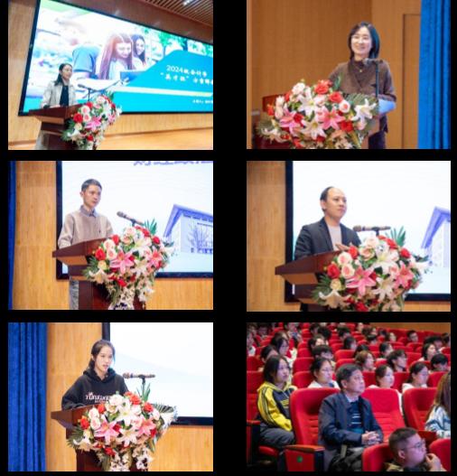 学业导师代表宗萍、德育导师尹垚、行业导师代表谭俊依次上台发言,他们分别从专业角度、品德养成、未来发展方向等角度,跟同学们探讨未来学习成长过程中的心态、学习成长思路、未来发展目标,期望同学们能久久为功,不仅要在专业知识上不断精进,更要在道德品质上追求卓越。24级会计学7班团支书黄文茜同学作为学生代表,分享了自身对于未来校园生活的规划与展望。