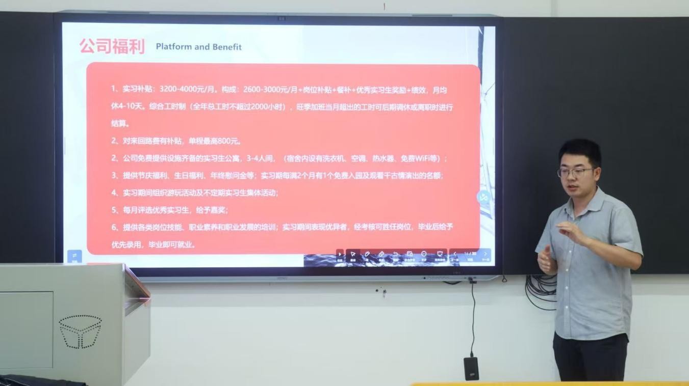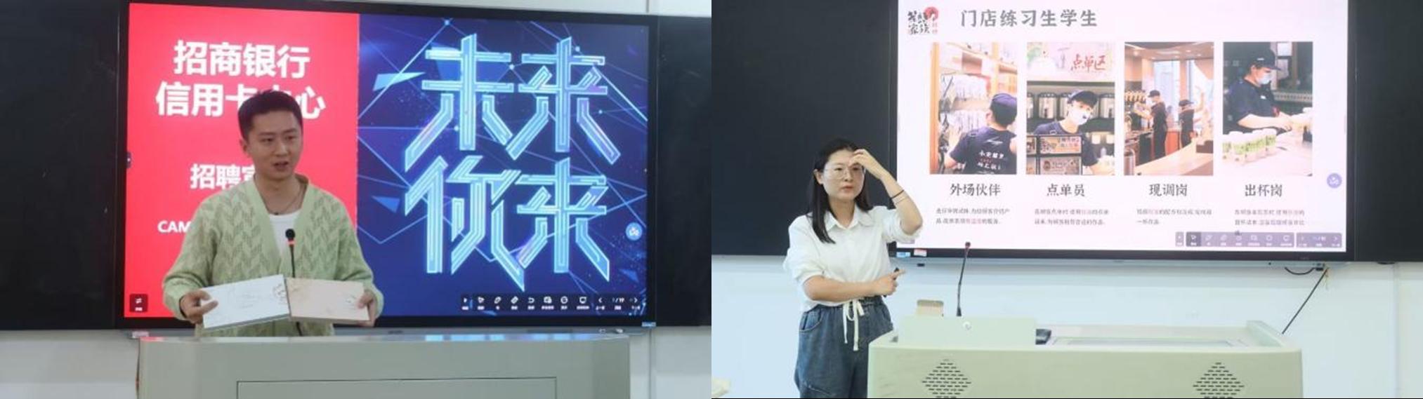 线下双选会同期,招商银行、茶颜悦色等多场企业宣讲会在不同教室同步开讲,招商银行详解企业文化和薪酬福利体系,从竞争性薪酬到全维度福利保障,再到“平均年龄26岁”的年轻化团队,让学子们看到金融行业的成长机遇;茶颜悦色聚焦“门店练习生”培养体系,拆解各个岗位的成长路径展现基层岗位的发展空间;三江文化旅游公司充分展示自身优势与发展前景,从十强企业到海外项目建设的成就,以及公司的福利体系,多层次体现出企业对人才的维护与重视。