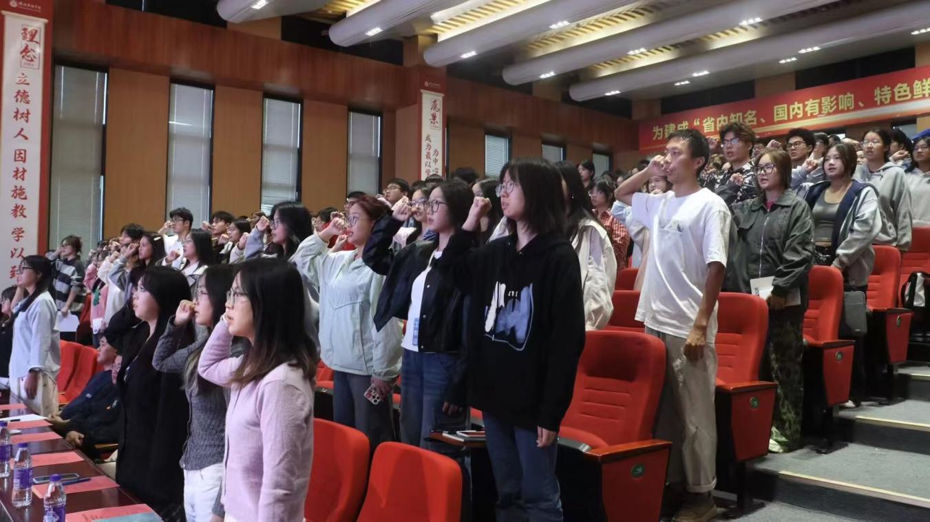 活动伊始,全场起立奏唱共青团团歌,青春旋律中尽显学生干部的蓬勃风貌。随后,新干事代表张可盈登台发言,从“坚守服务心”“锤炼履职本领”“凝聚团队合力”三方面分享了对学生工作的思考与期待;全体学生干部共同宣读《干部宣言》,以青春之名承诺“恪守本分、严守纪律、倾听心声、创新突破”,誓言铿锵,彰显以同学为中心的责任担当。