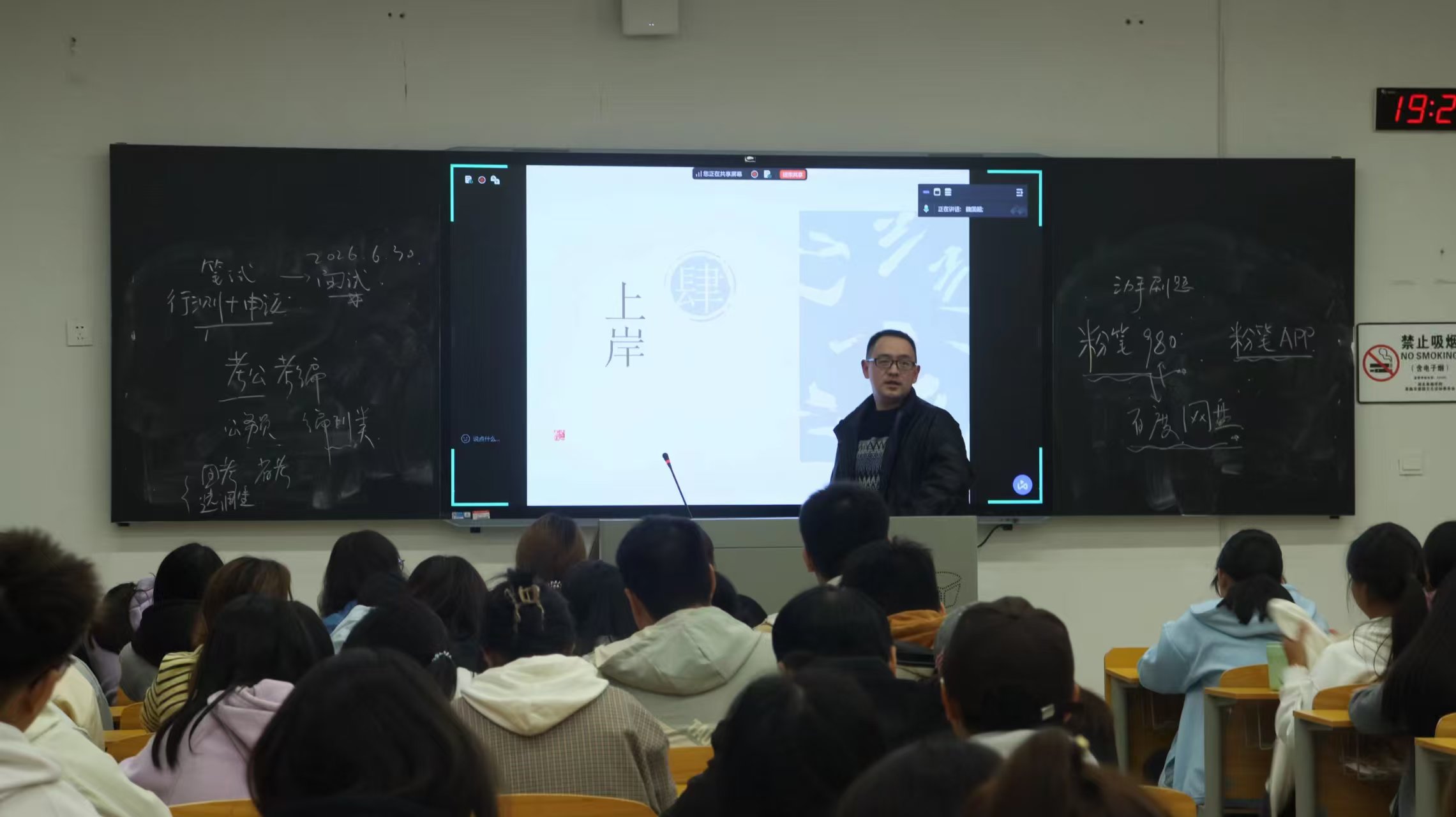 活动尾声,黑板同步呈现备考关键信息,在现场学子结合自身疑问与嘉宾深度互动交流,最终主讲嘉宾以“上岸”主题寄语收尾,为整场活动画上完美句号。