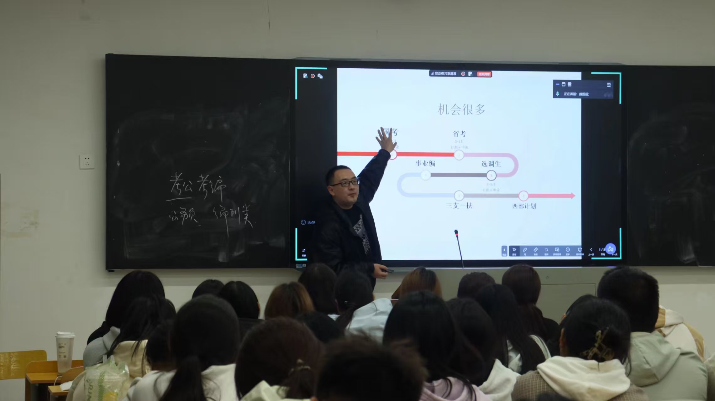 此次分享会不仅为学子搭建了经验交流平台,有效解答了考公考编的备考困惑,更拓宽了大家对基层就业的认知视野,助力学子明确职业规划、提升备考效率。期待同学们能以此次分享为契机,科学规划备考进程、积极投入复习准备,在升学就业的赛道上稳步前行,书写青春华章。