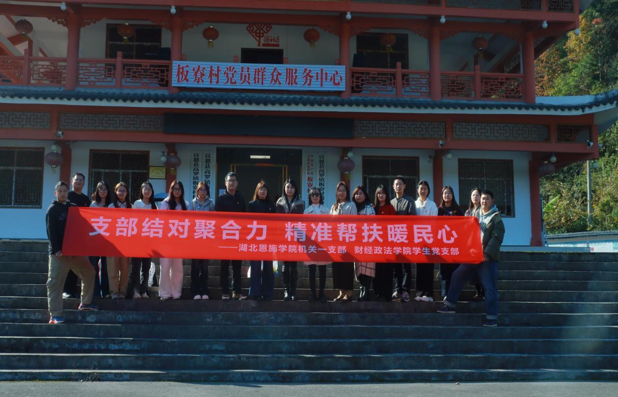 本网讯(通讯员 彭娟 李昕怡/文)为深入学习贯彻党的二十大精神及习近平总书记近期重要讲话精神,深化主题教育成果,引导党员干部立足岗位服务乡村振兴大局,湖北恩施学院机关一支部与财经政法学院学生党支部于2025年11月14日赴宣恩县板寮村开展主题党日活动。