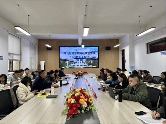 为进一步明确学院发展方向,统筹推进各项重点工作,2025年12月29日下午,财经政法学院在至精楼405会议室召开全院教职工大会。学校组织人事处处长左韵、财经政法学院院长卢平、党总支书记兼学生发展中心主任丁立杰、副院长兼会计系系主任孙江艳及学院全体教职工参加本次会议,会议由学院办公室主任宋成杰主持。