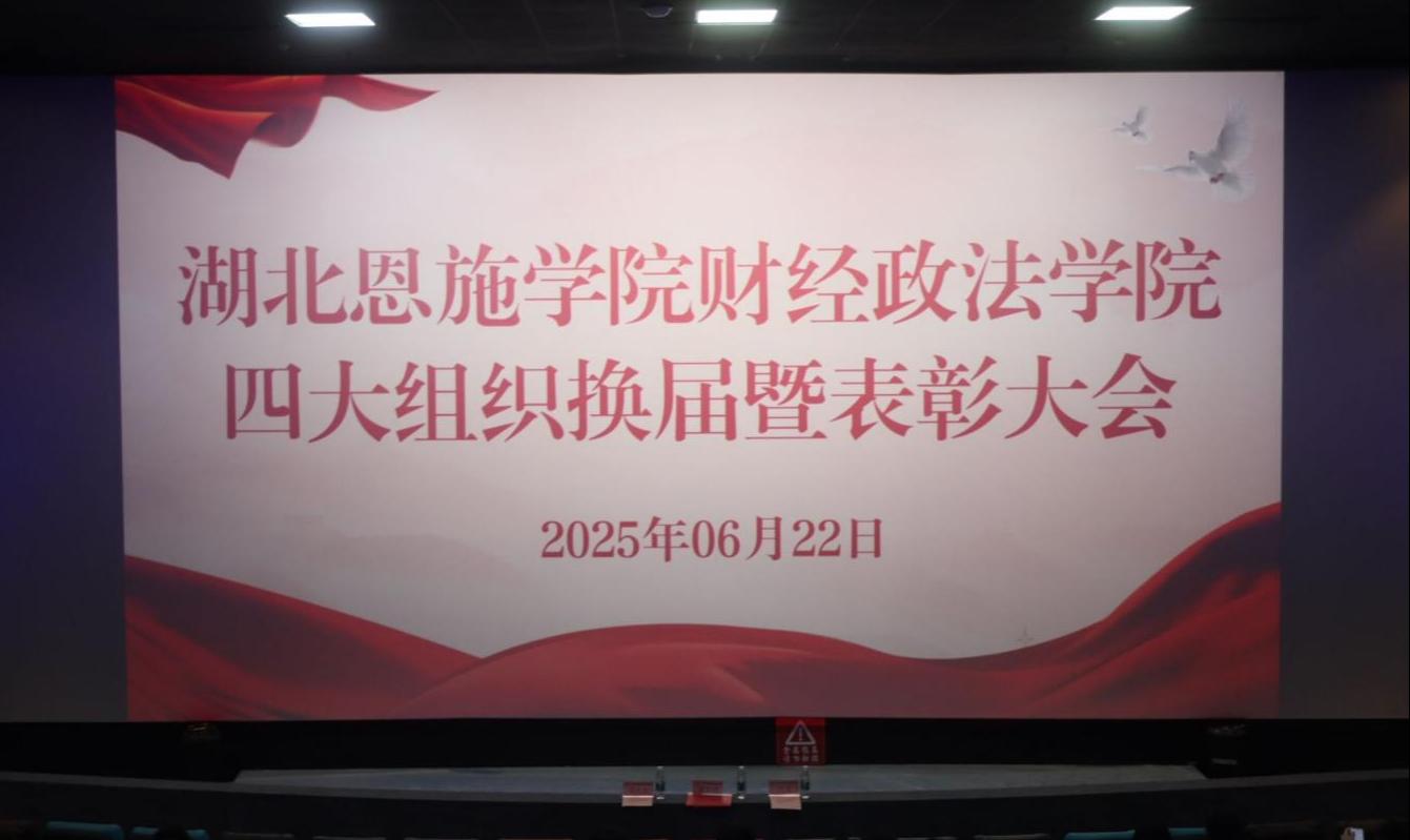 本网讯(通讯员 向旎榕 潘宇露/文 刘圆圆 宋子薇/图)为凝练学院学生工作经验、表彰在干部工作中表现卓越的学生骨干,并推动组织体系完善与干部梯队优化,确保学院工作高效传承与发展,财经政法学院于2025年6月22日下午举行财经政法学院四大组织换届暨表彰大会。财经政法学院团总支指导老师谭林峰老师、学生会指导老师谭佐航老师、寓管会指导老师江文出席大会。大会开篇,全体成员肃立齐唱团歌。主持人介绍参会嘉宾后,由四大组...